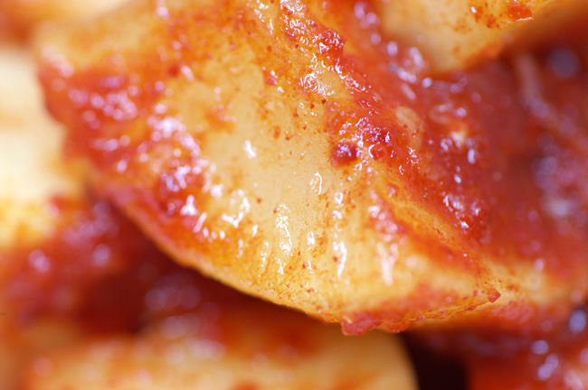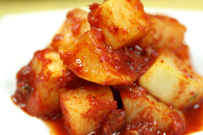 ダイコンのキムチももちろん出来立ても美味しいのですが適度に醗酵が進んだダイコンは辛過ぎないからさとダイコンの甘さと旨さ、そして舌が少〜〜しピリッとした独特の感触がたまりませんね。ビールのおつまみにも最高です。
